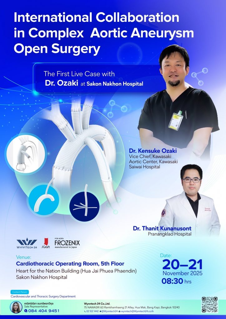 川崎大動脈センターでは、2024年12月から新たな試みとして当センター医師を年単位でタイに派遣しKAS: Kawasaki Aortic Surgeryを普及するprojectを開始しています。