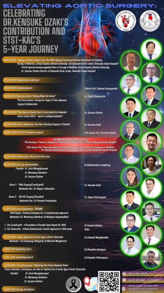 川崎大動脈センターでは、2024年12月から新たな試みとして当センター医師を年単位でタイに派遣しKAS: Kawasaki Aortic Surgeryを普及するprojectを開始しています。